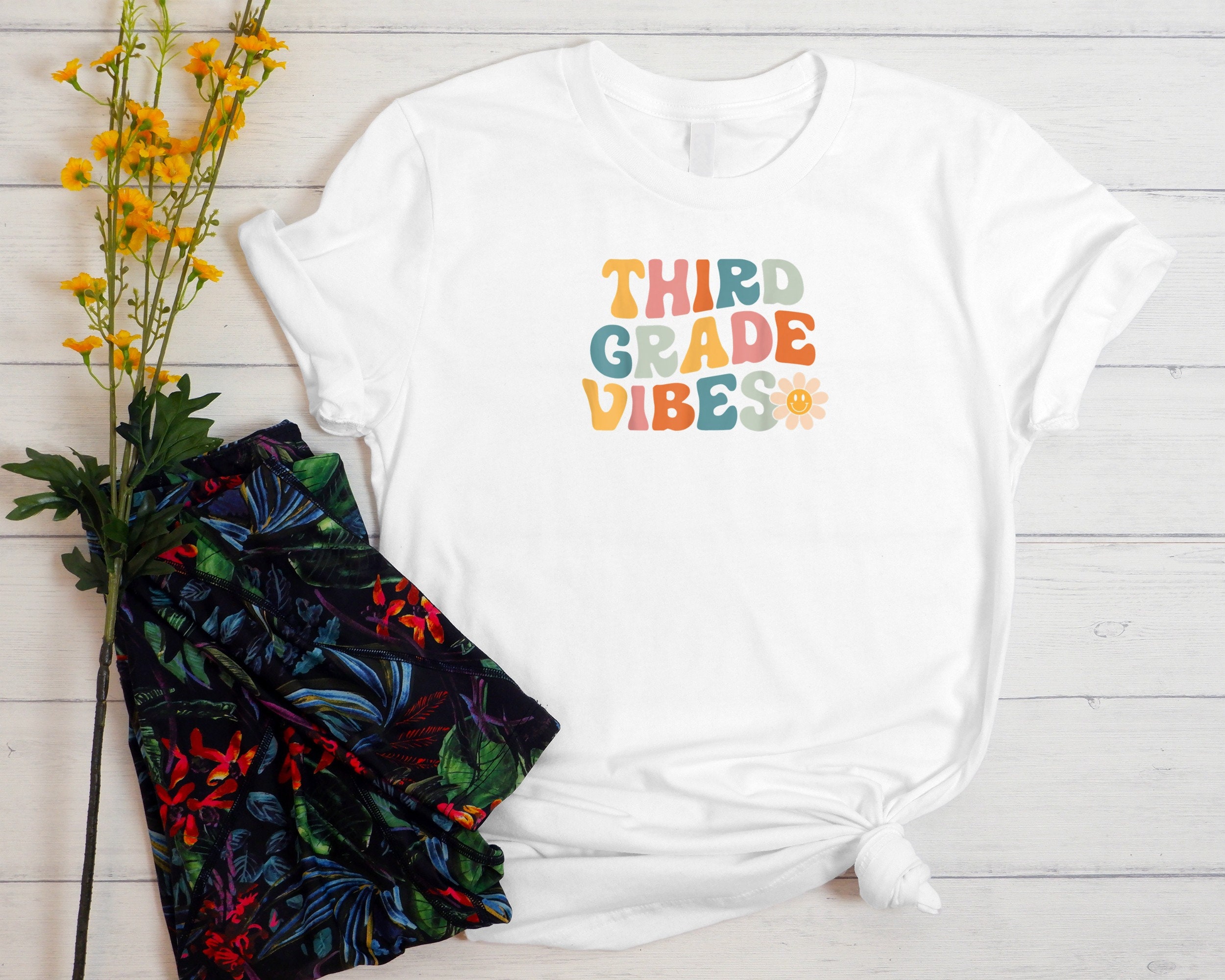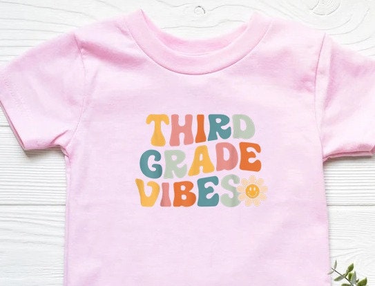 Back to School Shirt – Third Grade Vibes Kids Shirt – First Day of School Retro Natural Infant, Toddler, Youth & Adult Tee