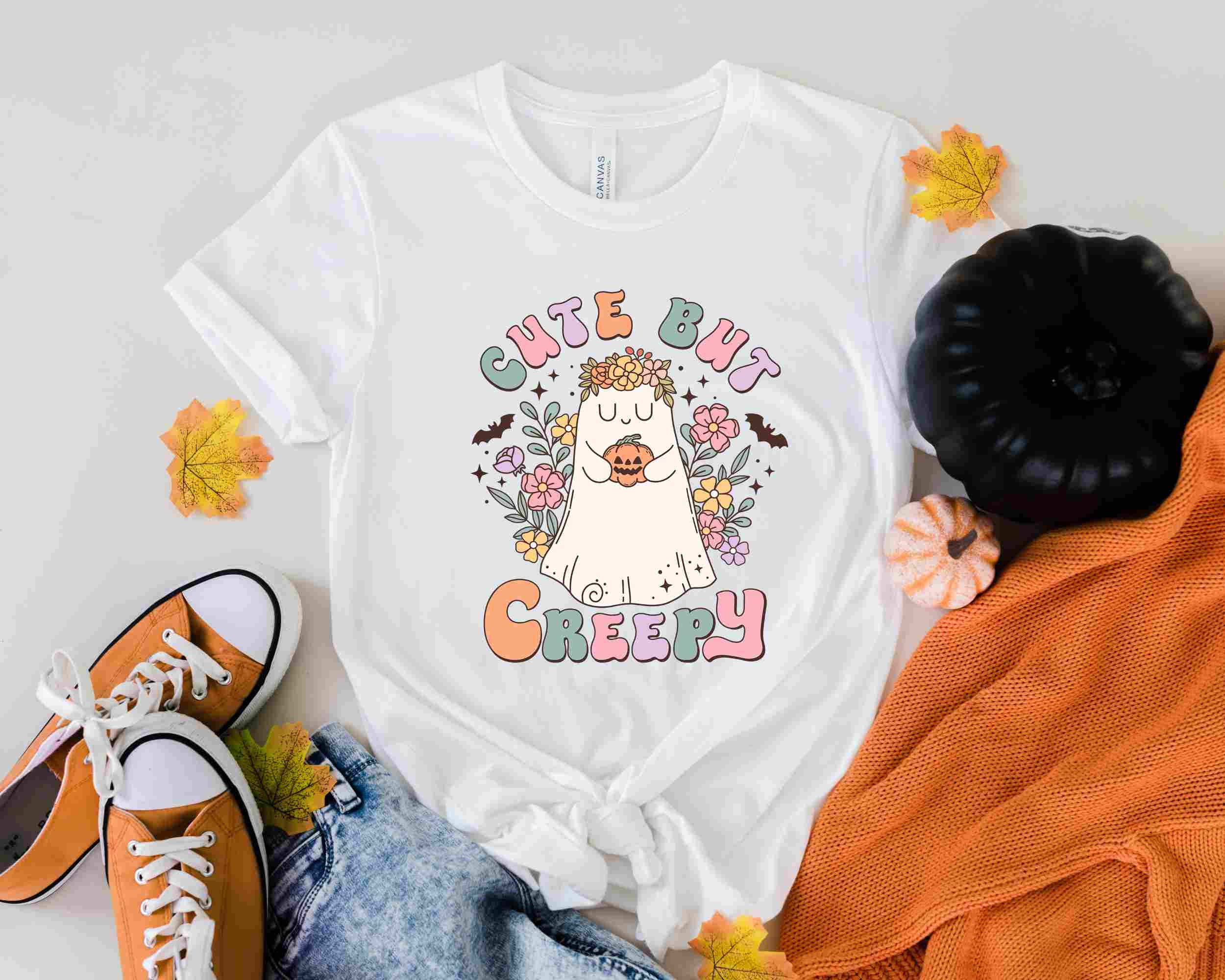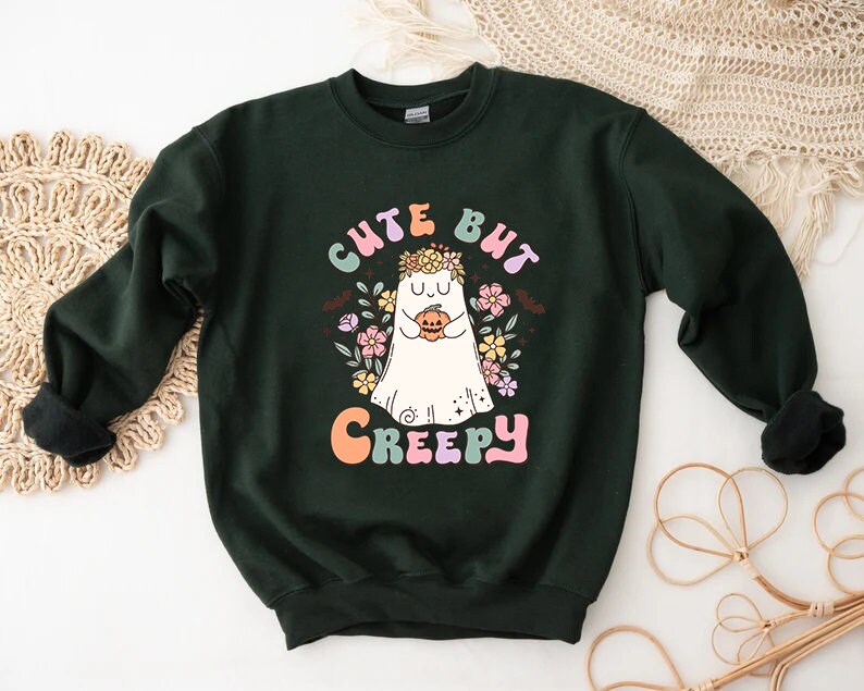 Cute But Creepy Sweatshirt, Spooky Vibes Shirt, Spooky Season Sweater, Cute Ghost , Trick Or Treat Sweater, Halloween Crewneck, Halloween