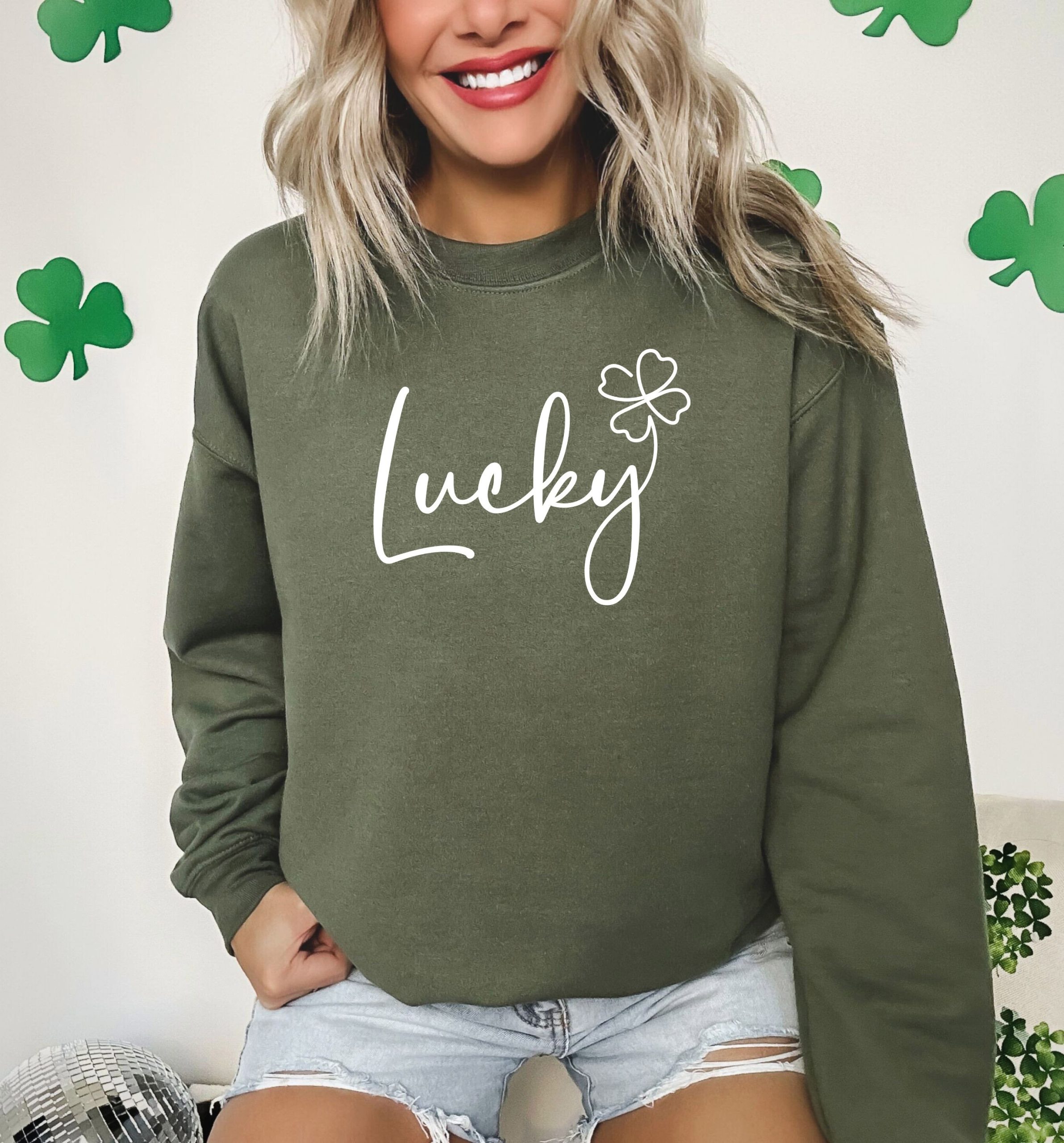 Lucky Sweatshirt, St Patricks Day Shirt, Lucky Crewneck Sweater, Shamrock Tee, Saint Patricks Day Gift, Irish Tshirt, Four Leaf Clover Shirt