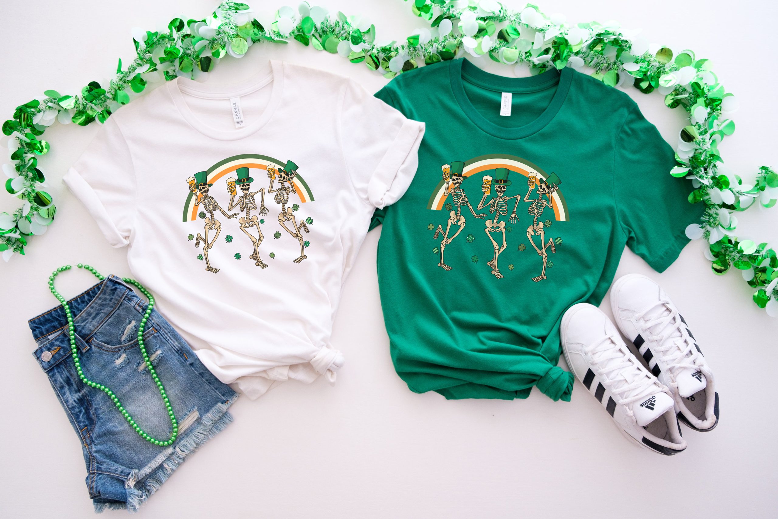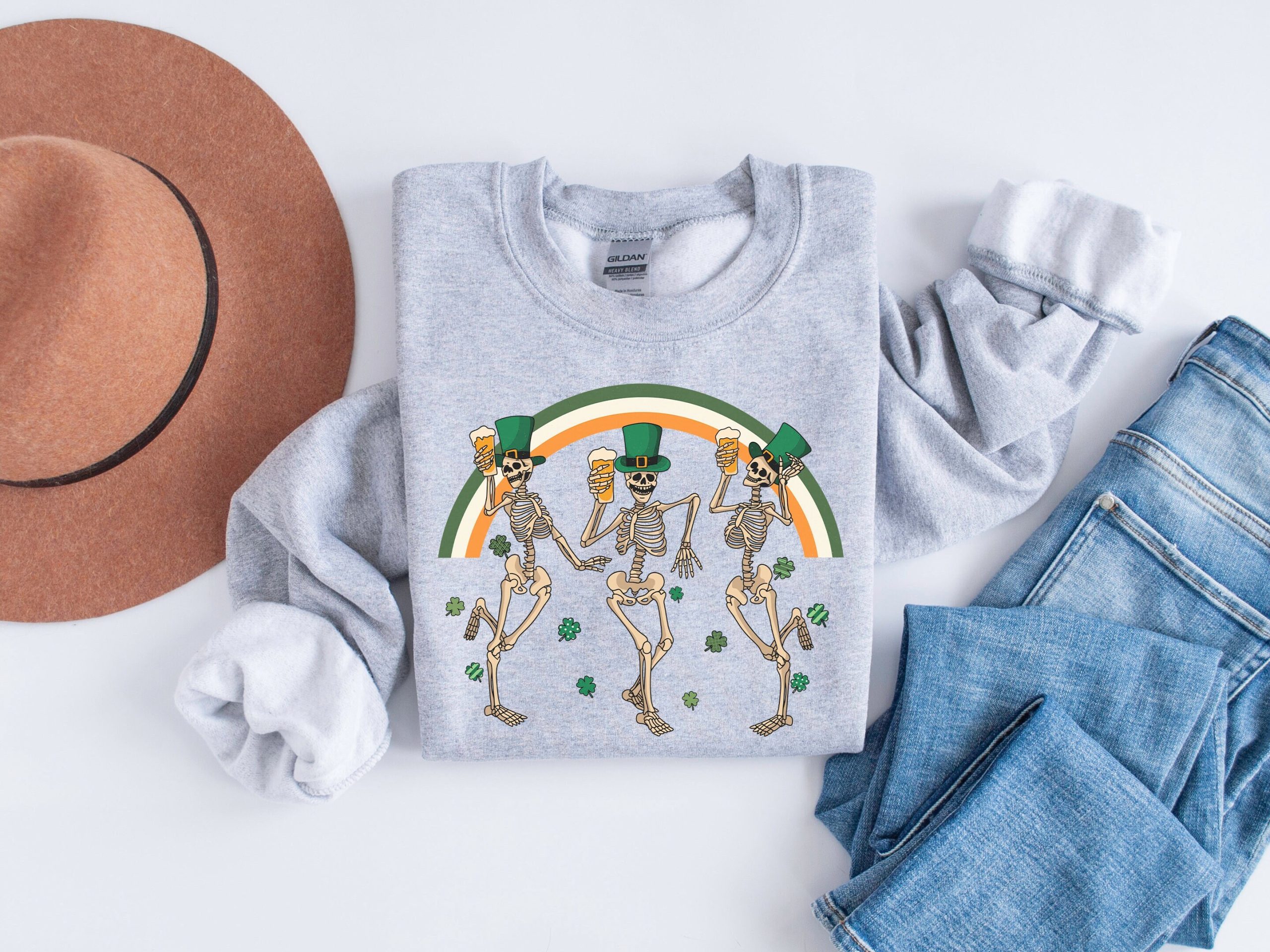 St Patricks Day Skeleton Sweatshirt, Rainbow St Patrick’s Day Shirt, Dancing Skeletons Shirt, Irish Sweater, St Paddys Day, Shamrock Shirt